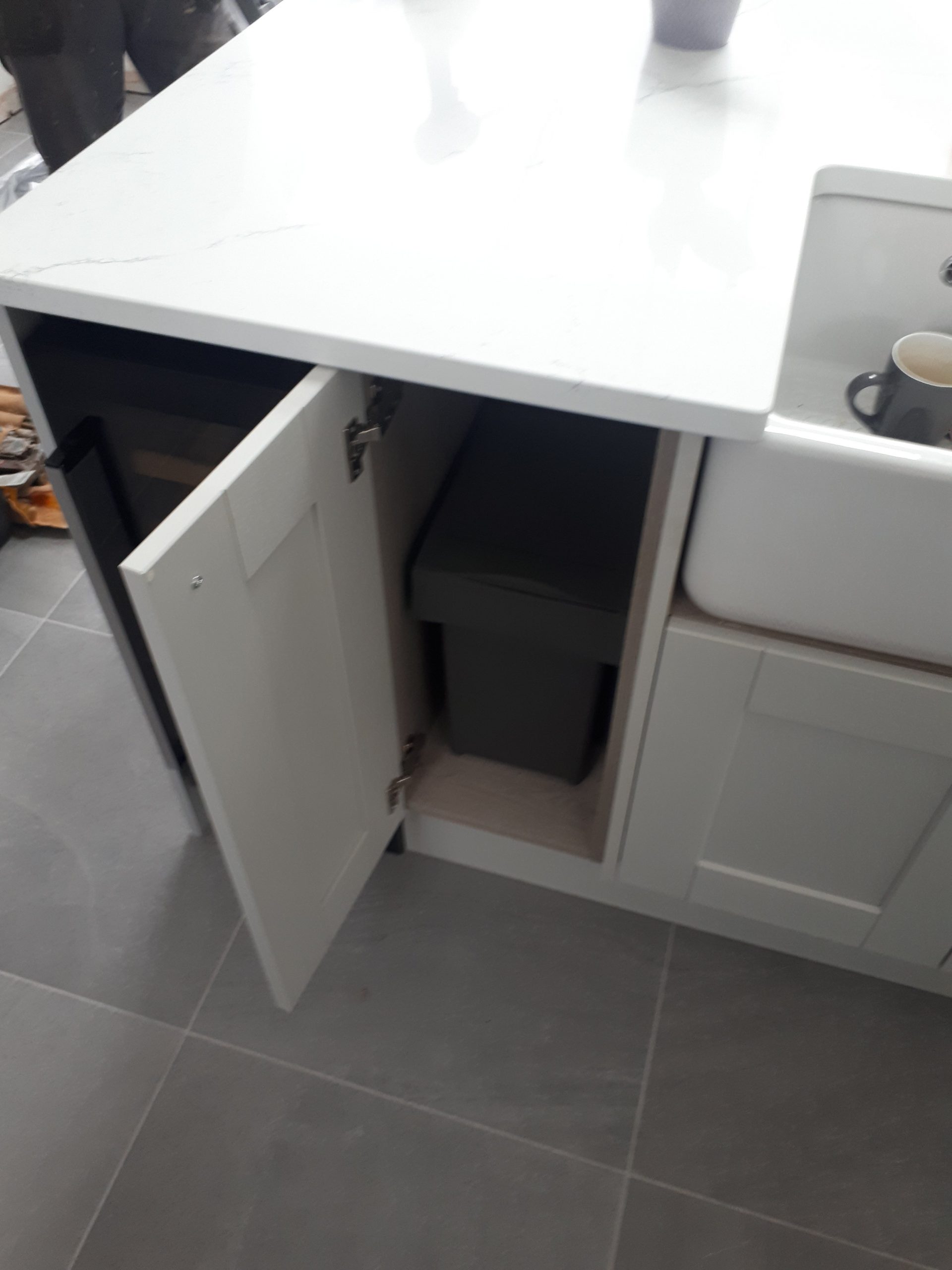 Images taken x2 weeks later showing the completed kitchen . All the Joinery work was completed by CL Joinery taking 5 days , the floor tiling and granite worktops completed by 3rd party contractors everything else fitted by CL Joinery.
